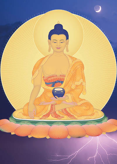 Unsere eigentliche Zuflucht ist die Medizin der Lehren Buddhas, die das Leiden unseres Körpers und Geistes verhindert. Buddha ist der Arzt, der uns diese Medizin verschreibt und uns ermutigt, sie einzunehmen. Die Sangha sind unsere reinen spirituellen Freunde, die uns bei unserer Praxis unterstützen. Dies sind die drei Juwelen der Zuflucht, an die wir uns sowohl für vorübergehenden als auch für endgültigen Schutz wenden können.